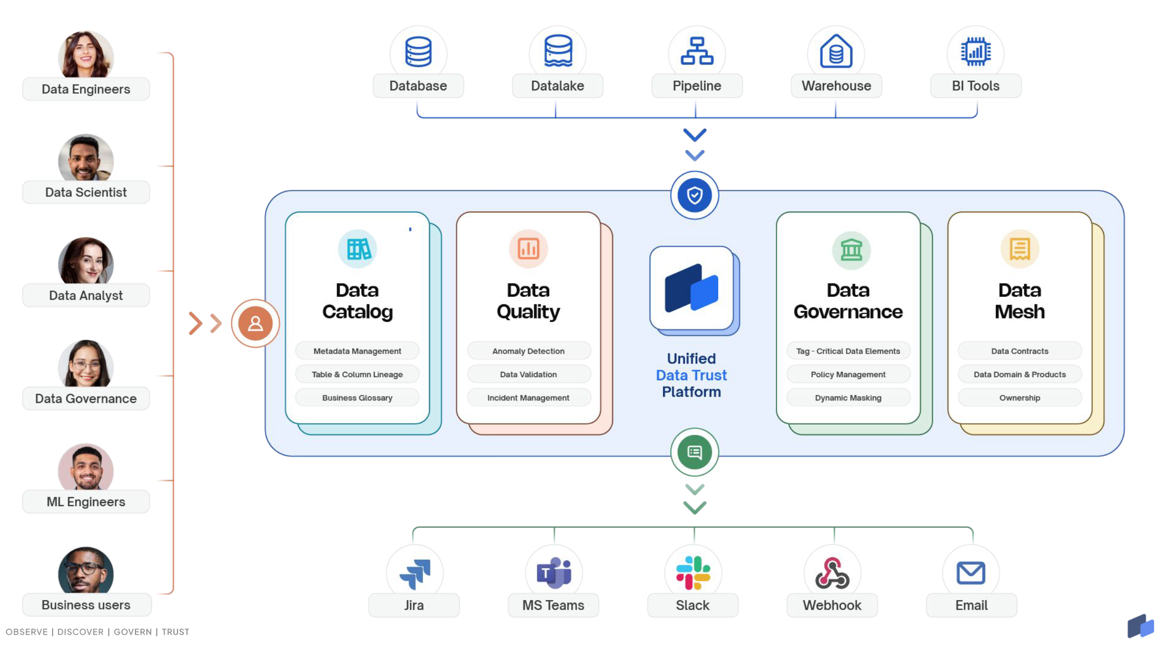 Our platform enables data teams to establish complete trust in their data through intelligent monitoring, seamless discovery, robust governance, and enterprise-grade security.