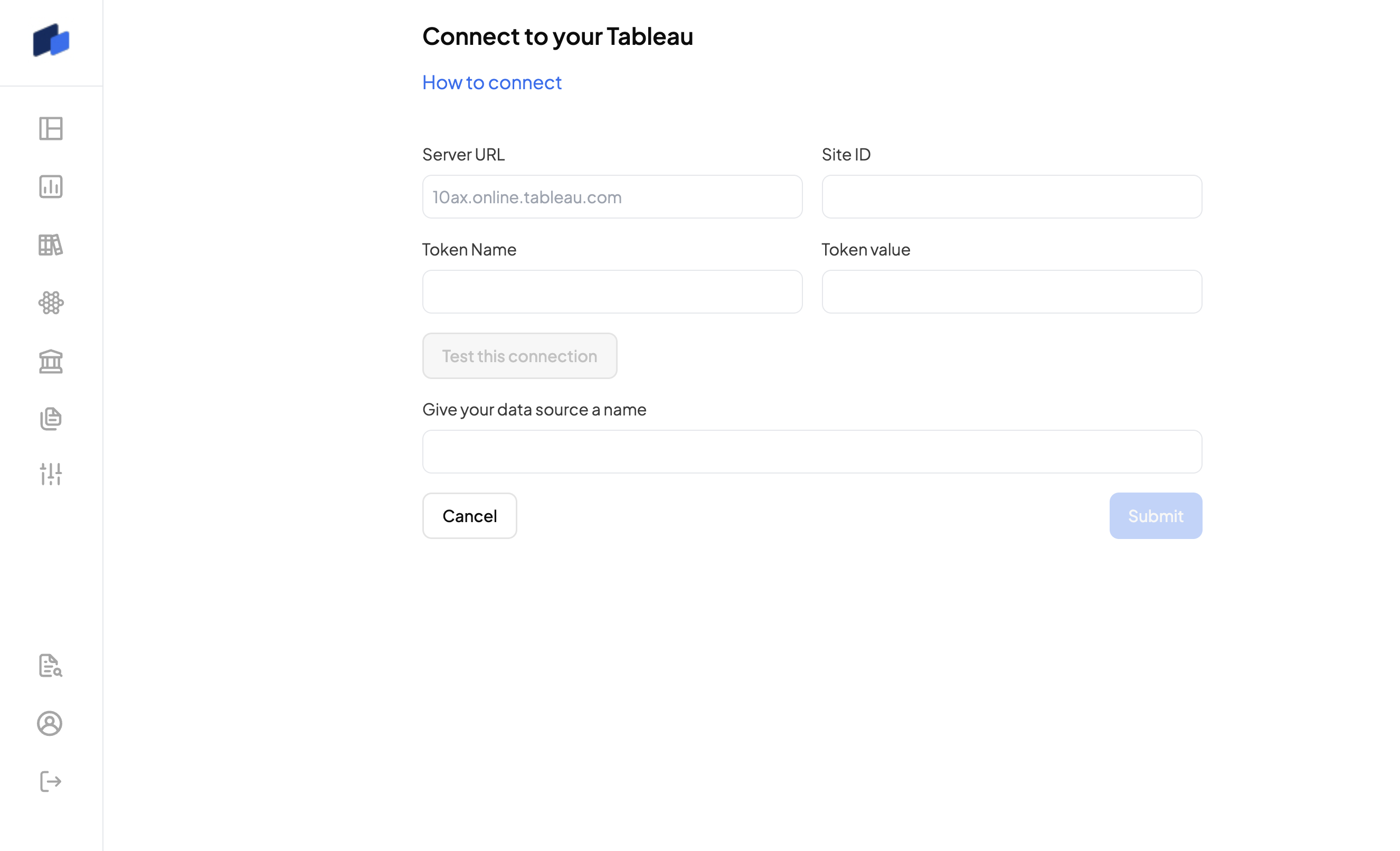 If you are using Tableau Server (On-premise), you can leave the Site ID field empty upon submission.
