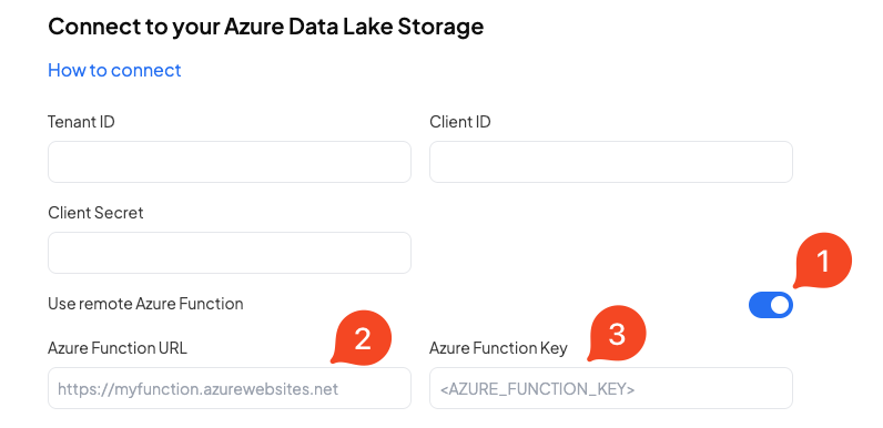 1. When creating/modifying an ADLS source, enable `Use remote Azure Function`