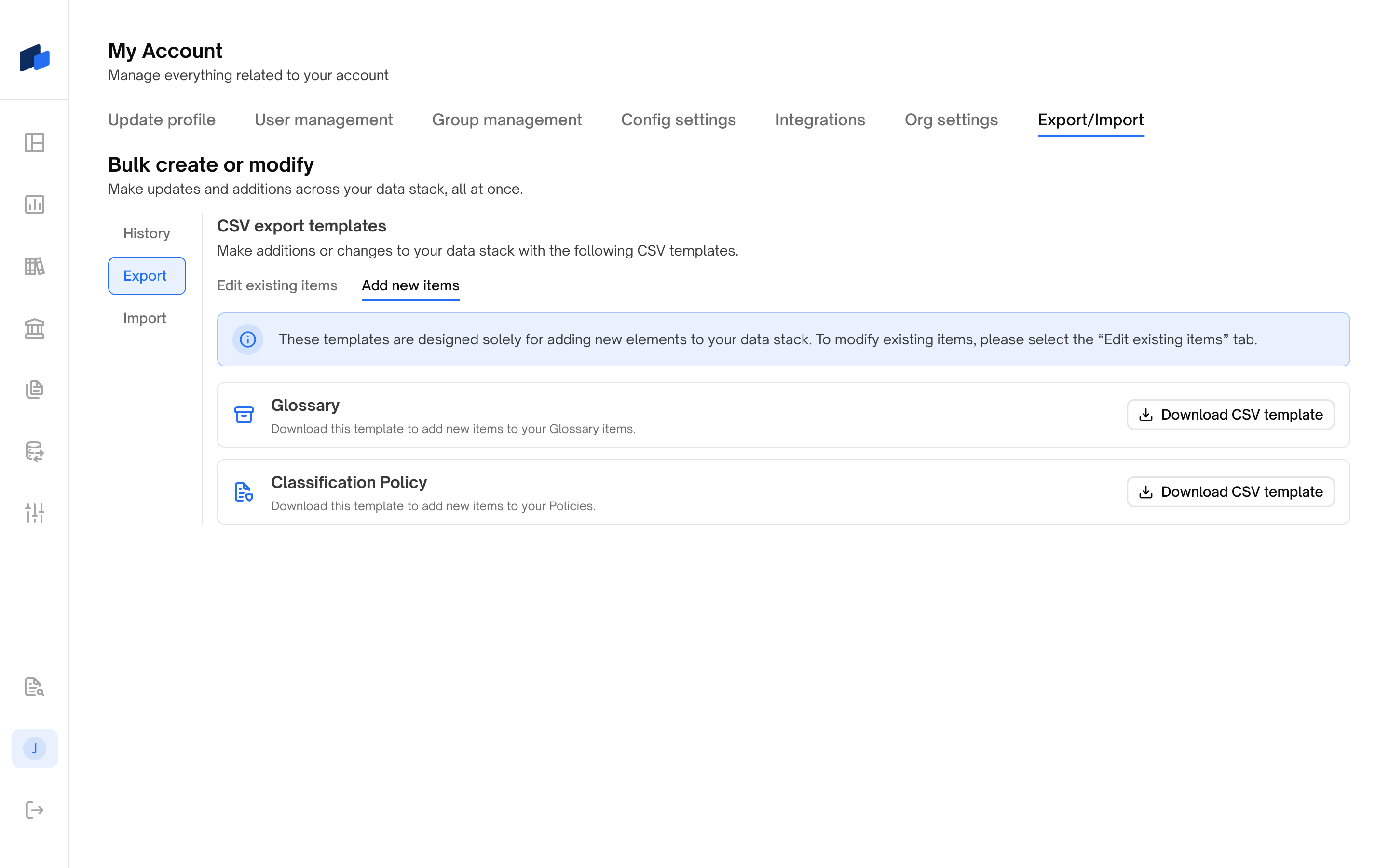 This guide explains how to download ready-made CSV templates for adding new Glossary or Classification Policy objects in bulk. These templates make it easier to onboard structured metadata into Decube, without manual entry through the UI.