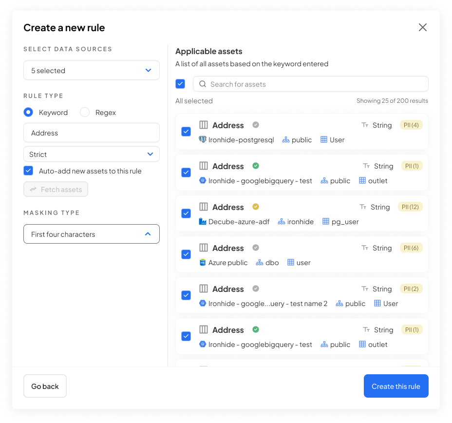 <figure><img src="https://1779874722-files.gitbook.io/~/files/v0/b/gitbook-x-prod.appspot.com/o/spaces%2FTw0qpCVzfrIXqS4FEg4T%2Fuploads%2Fgit-blob-12939f2027c311859eeaad211d1634c7d78acc74%2FFrame%203050.png?alt=media" alt=""><figcaption><p>Example of a rule that has been set up to detect the address column across multiple data sources.</p></figcaption></figure>
