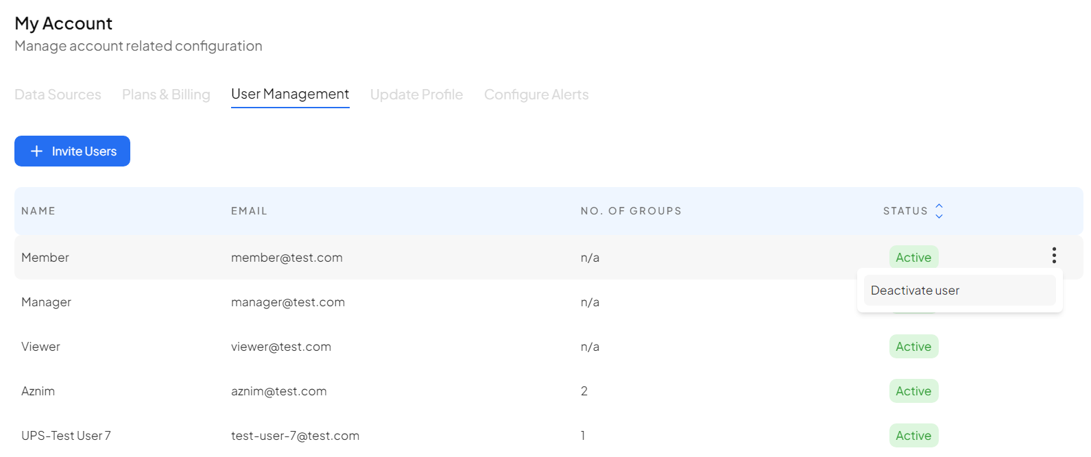 2. On any **Active** user, click on the ellipsis option. You will see the option for `Deactivate user`.