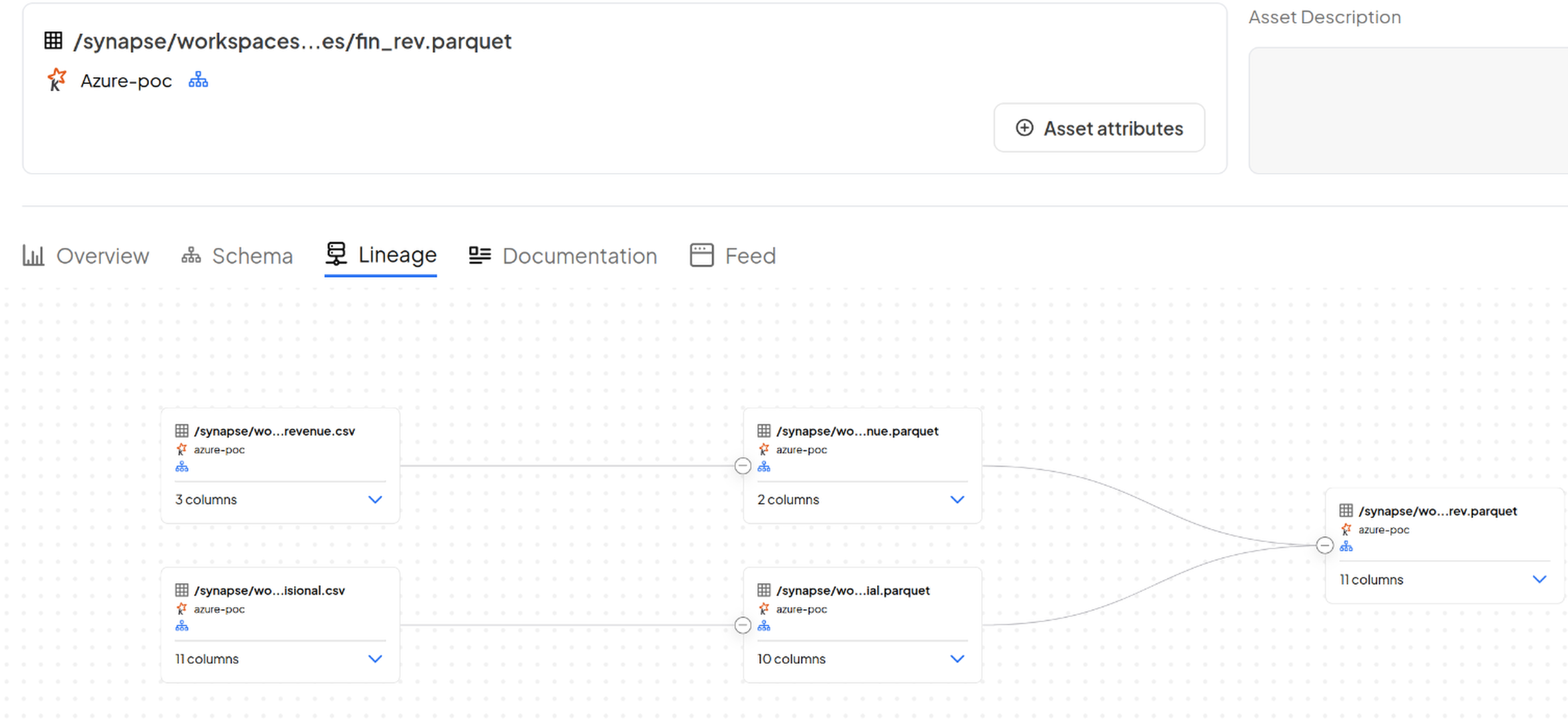 <figure><img src="https://1779874722-files.gitbook.io/~/files/v0/b/gitbook-x-prod.appspot.com/o/spaces%2FTw0qpCVzfrIXqS4FEg4T%2Fuploads%2Fgit-blob-18d0313997e9b4070029357c151cd411a83d251c%2FExample%20Lineage.png?alt=media" alt=""><figcaption><p>Example of 2 csv tables joined onto a parquet file in ADLS.</p></figcaption></figure>
