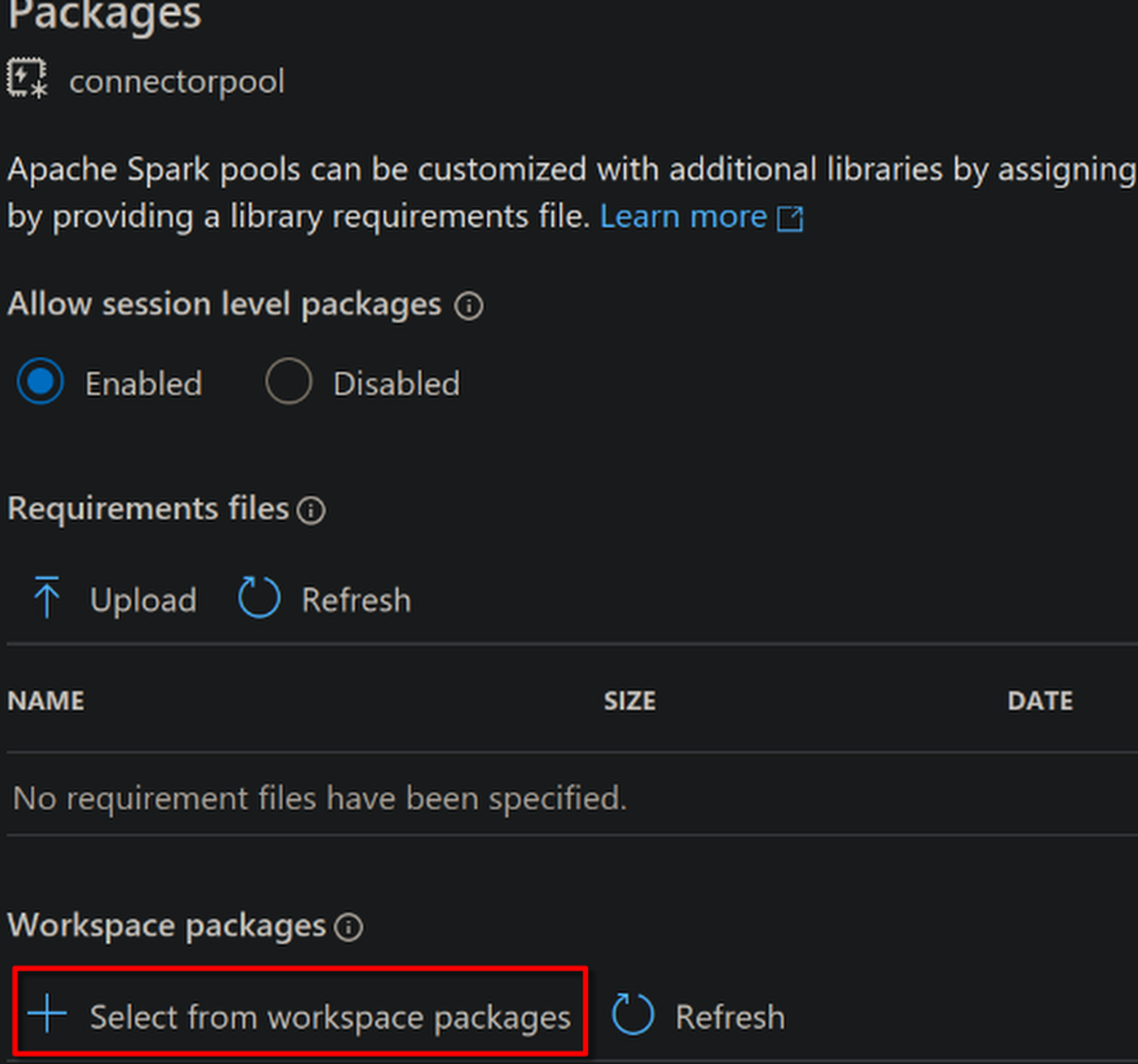 Now that OpenLineage is a workspace package, it needs to be installed in the default Apache Spark Pool environment.