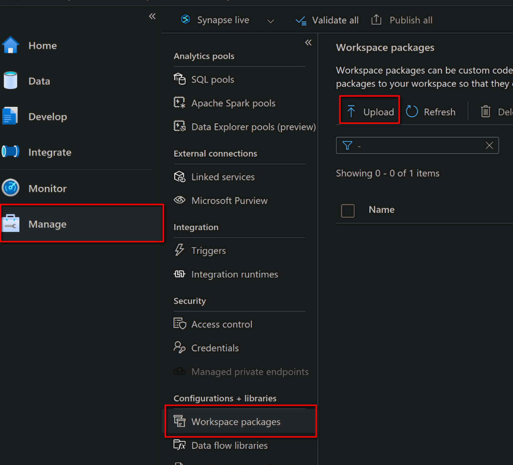 * Must have **WRITE** access to Azure Synapse Workspace Libraries.