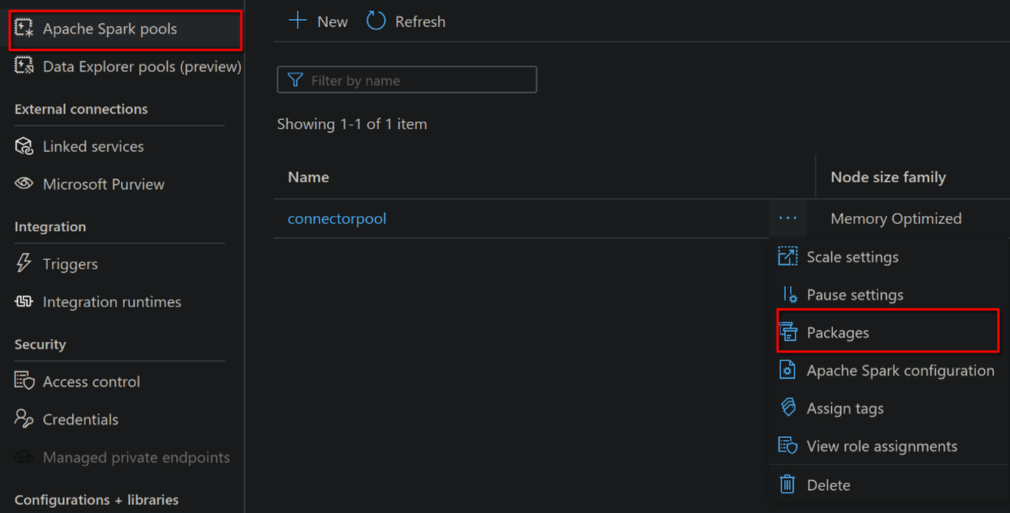 To track and manage data lineage within Spark jobs, the OpenLineage library must be added as a workspace-wide package, so we can add to the *Apache Spark Pool* as packages later.