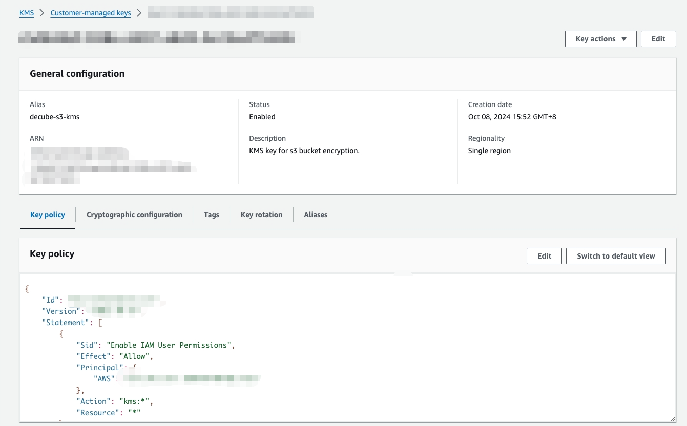If the bucket intended to be connected to Decube is encrypted using a customer managed KMS key, you will need to add the AWS IAM user created above to the key policy statement.
