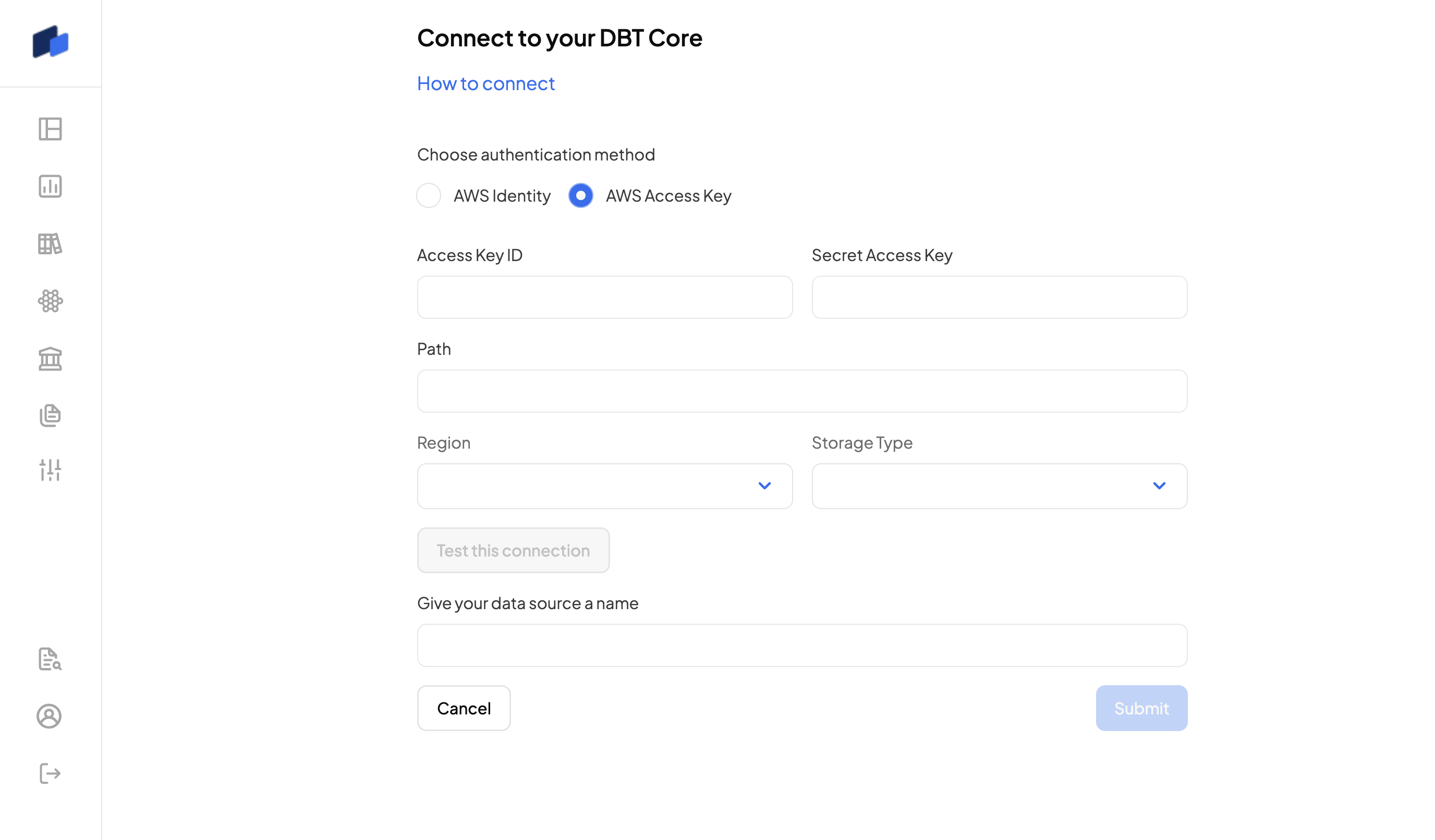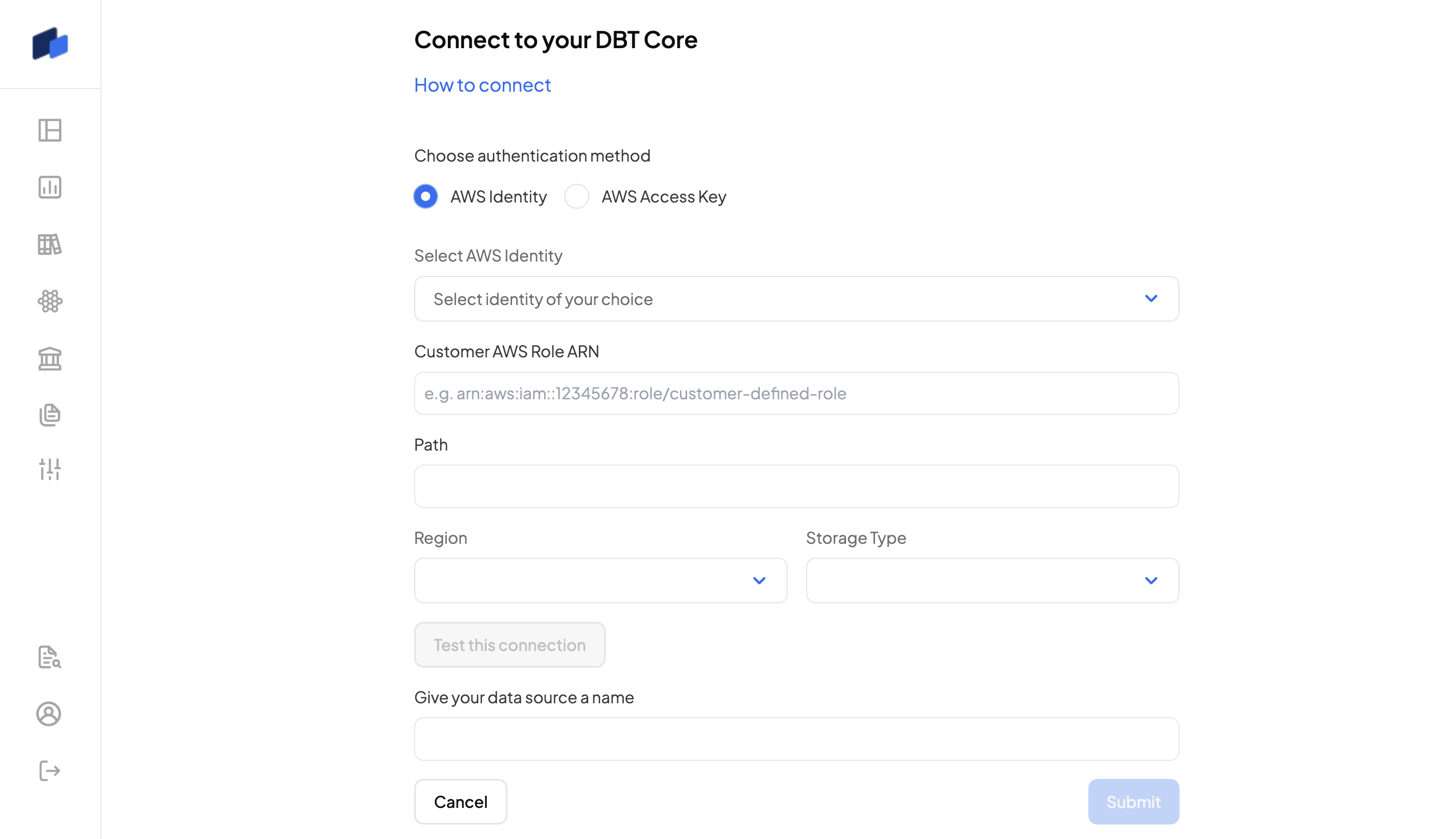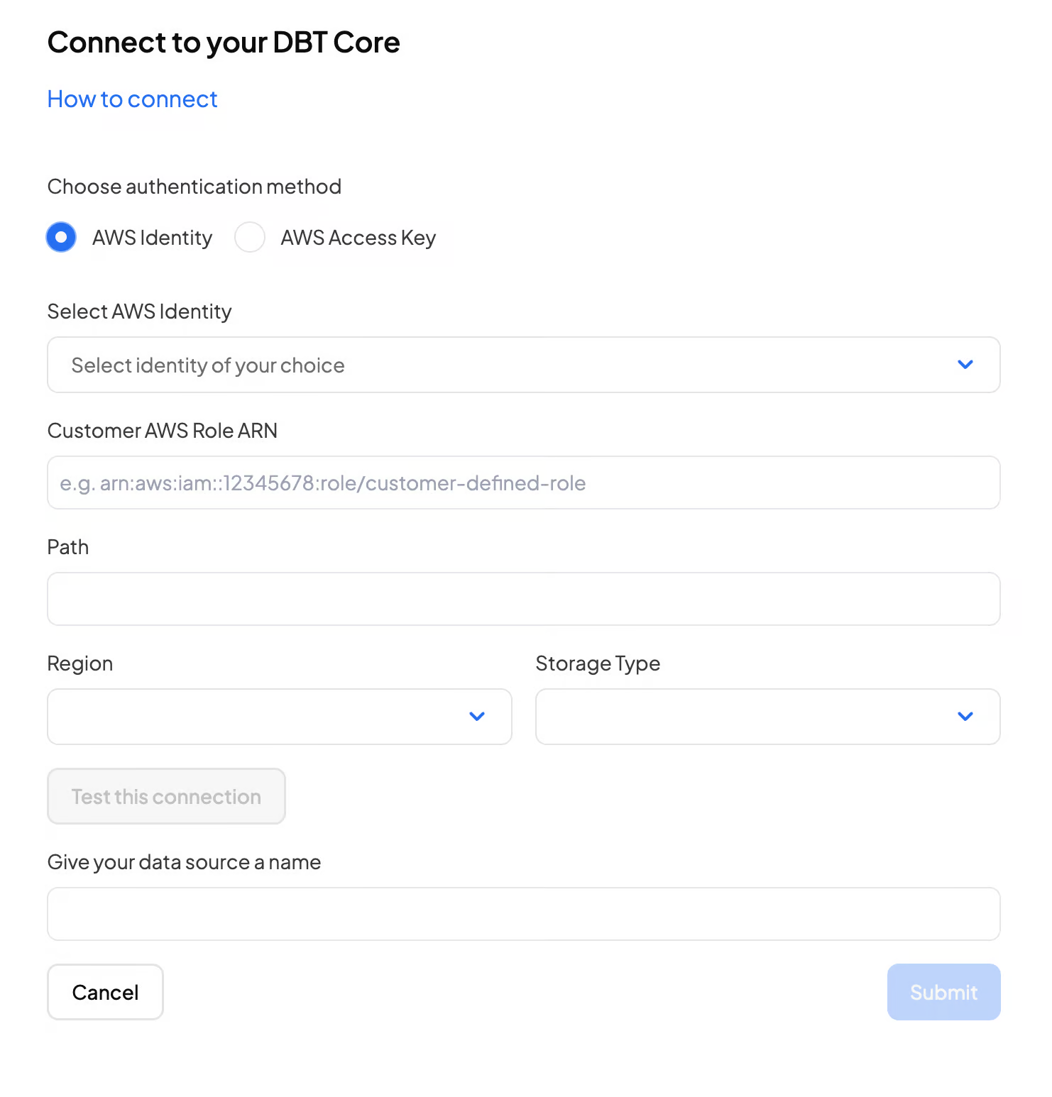 Integrating DBT Core with Decube involves reading files from an AWS S3 bucket, which shares similarities with how AWS S3 itself connects to the platform.