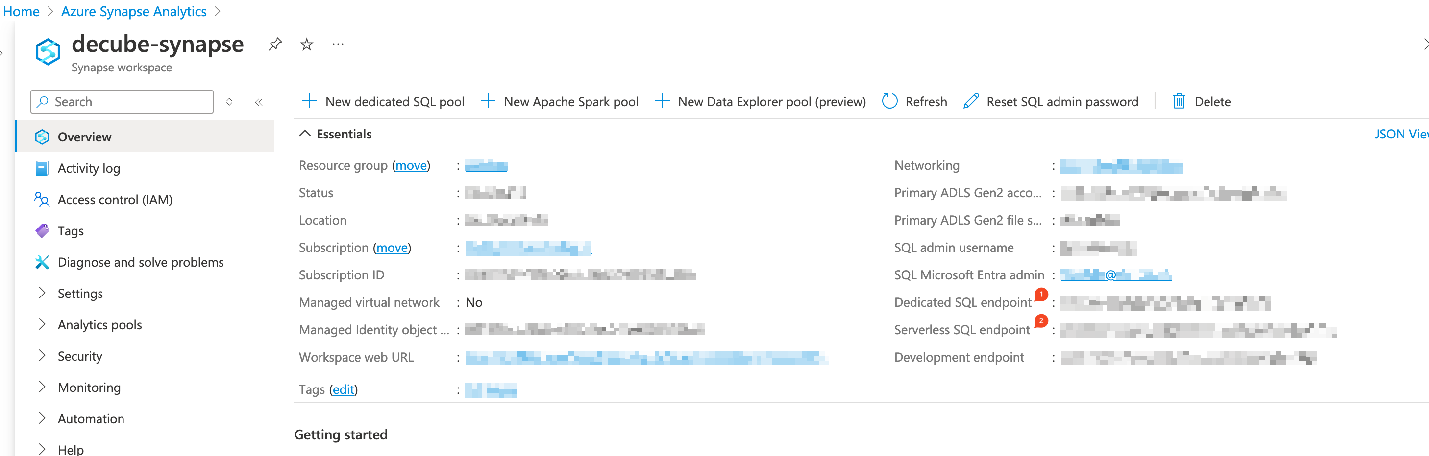 Log into your Azure account that has access to manage Synapse and click on the Synapse workspace of your choice. These are the information that you need to be aware of.